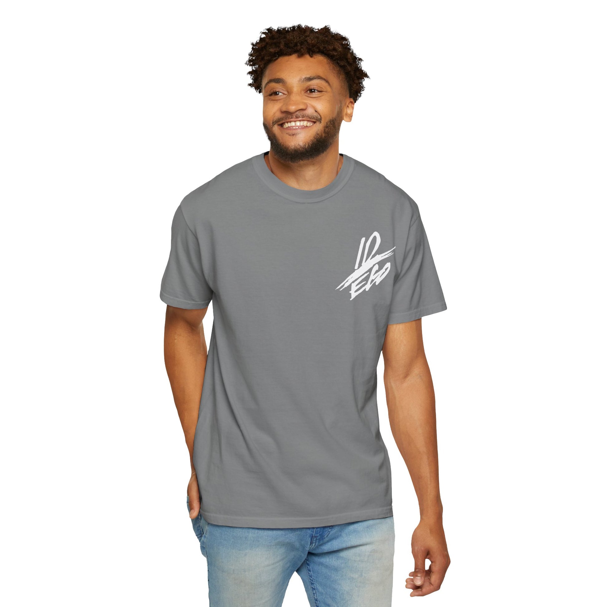 Quiet conviction to your everyday wardrobe. Washed-down, garment-dyed cotton feels broken-in from day one — soft, substantial, and worn without fuss. The front carries a small signature mark while the back speaks plainly in bold, block lettering: “FOR GLORY HIS NOT MINE.” It settles onto the shoulders without clinging, layers easily under jackets, and holds its shape thanks to double-needle stitching.
